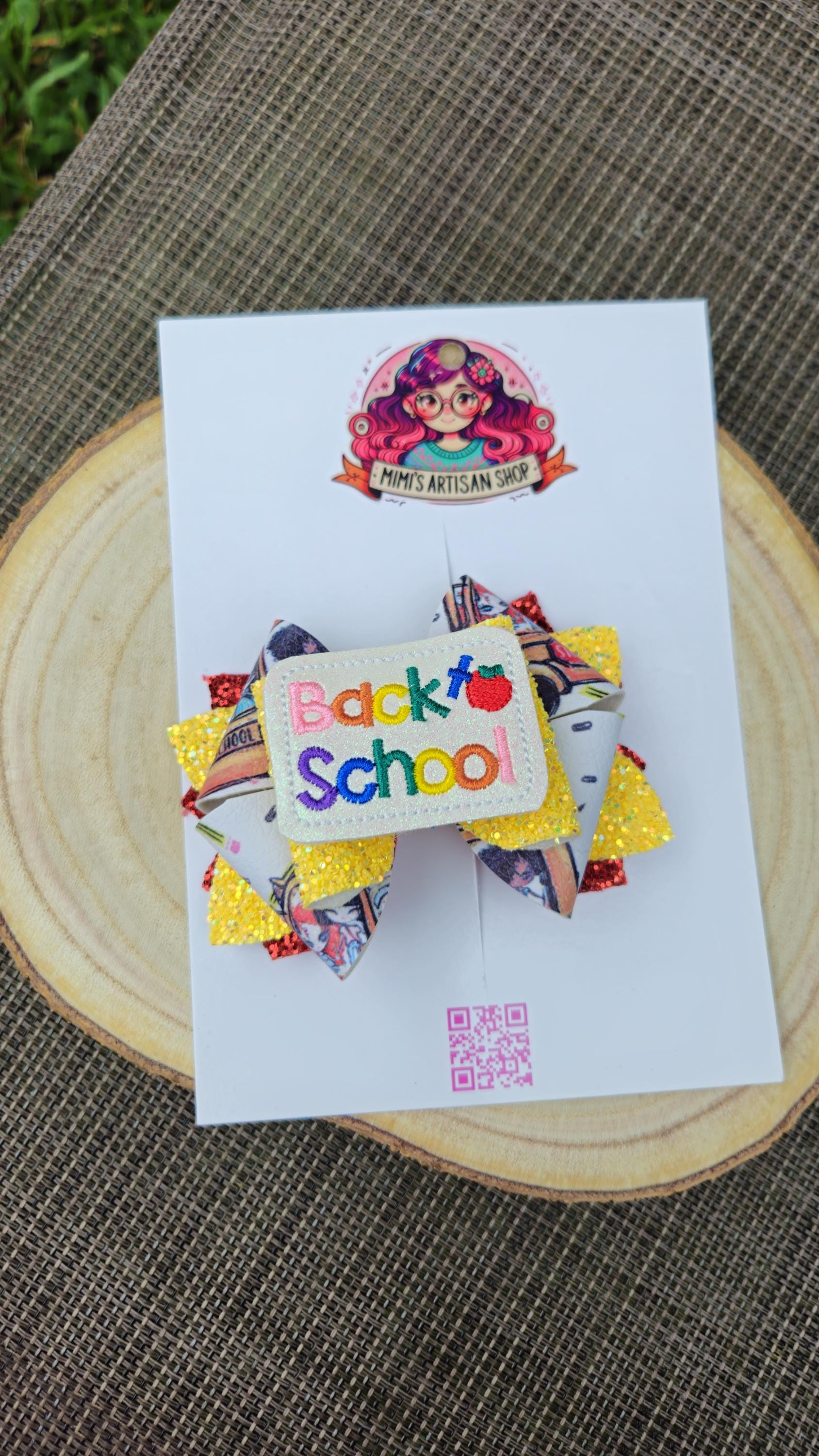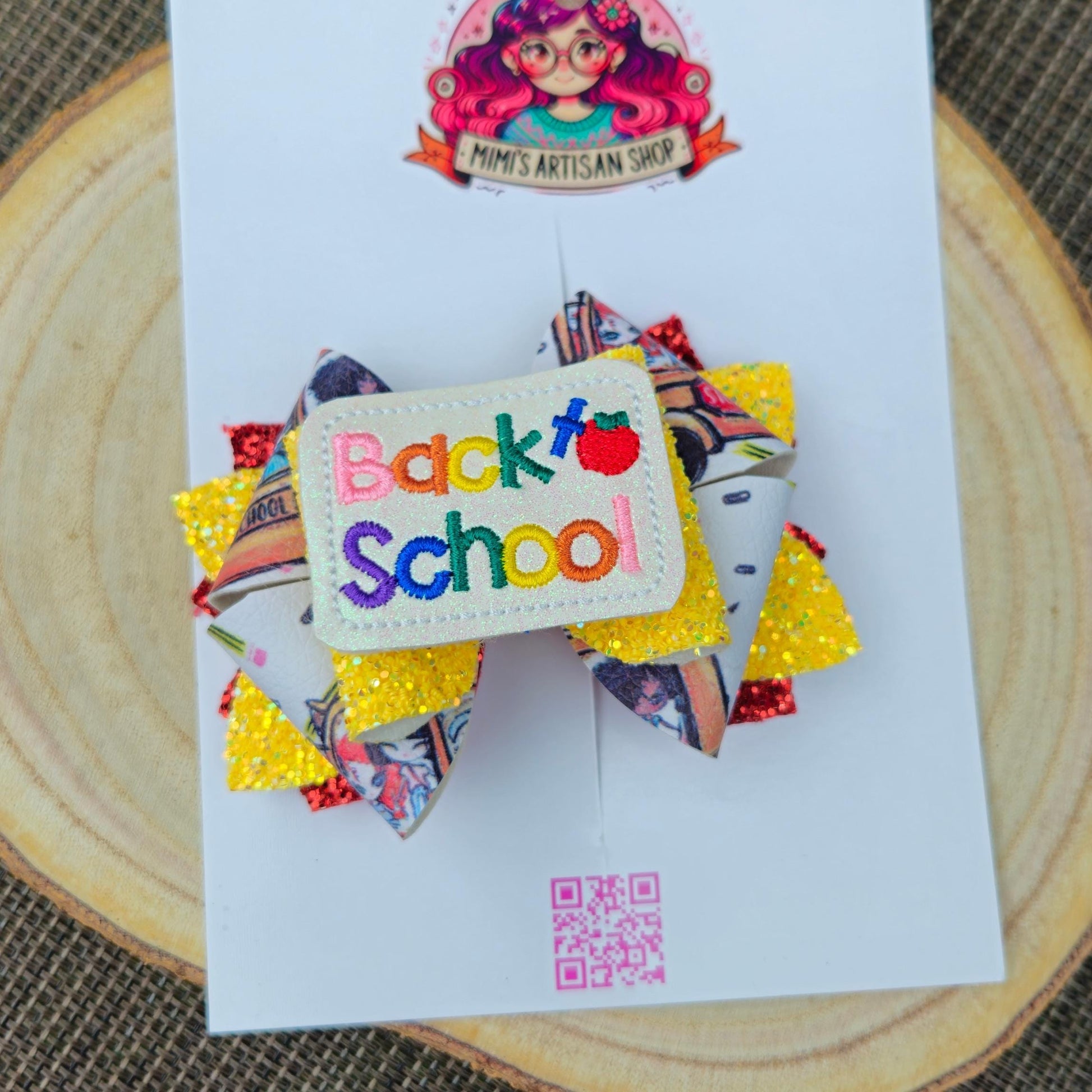 Back to school hairbow , hair ,accessories, girl bows, 4inch yellow, red,